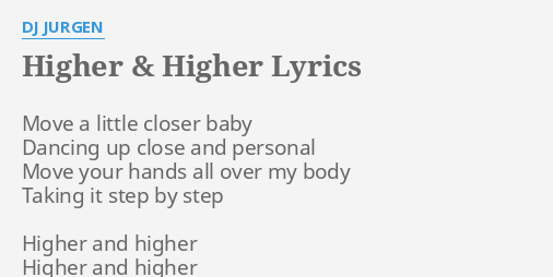 There are 60 lyrics related to Higherhigher. With Michèle Morgan Jack Haley Frank Sinatra Leon Errol. Move a little closer baby Dancing up close and personal Move your hands. Lyrics for Higher by Mo Chedda feat. This is an old song which i heard on the radio one day. There are 60 lyrics related to Higherhigher. Read or print original Higher And Higher lyrics 2021 updated. Brenda Fassie - Higher And Higher Lyrics. Browse for Higher And Higher song lyrics by entered search phrase.