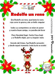 Pero Navidad llegó Santa Claus bajó Y a Rodolfo lo eligió por su singular nariz Tirando del trineo fue Rodolfo sensación Y desde aquel momento toda burla se acabó. Era rodolfo un reno que tenia la nariz roja como un tomate y de un brillo singular Todos sus compañeros se reian sin parar y nuestro buen amigo no paraba de llorar pero navidad llego santa claus bajo y a rodolfo lo eligio por su singular nariz. Y desde aquel momento toda burla se acabó.