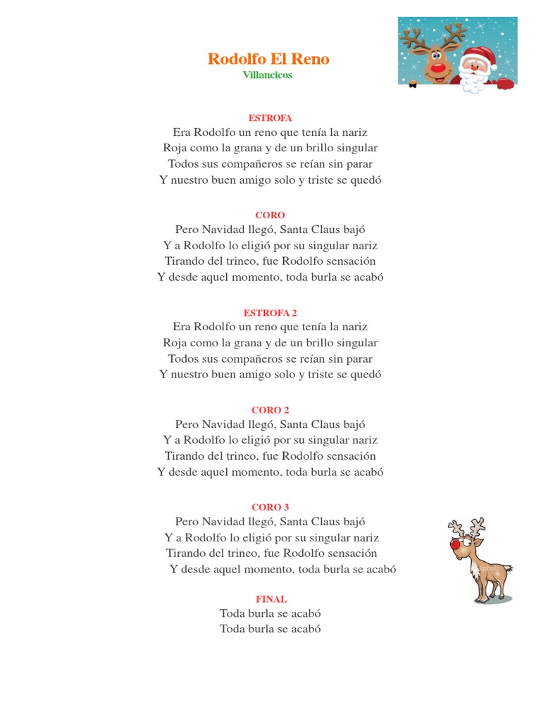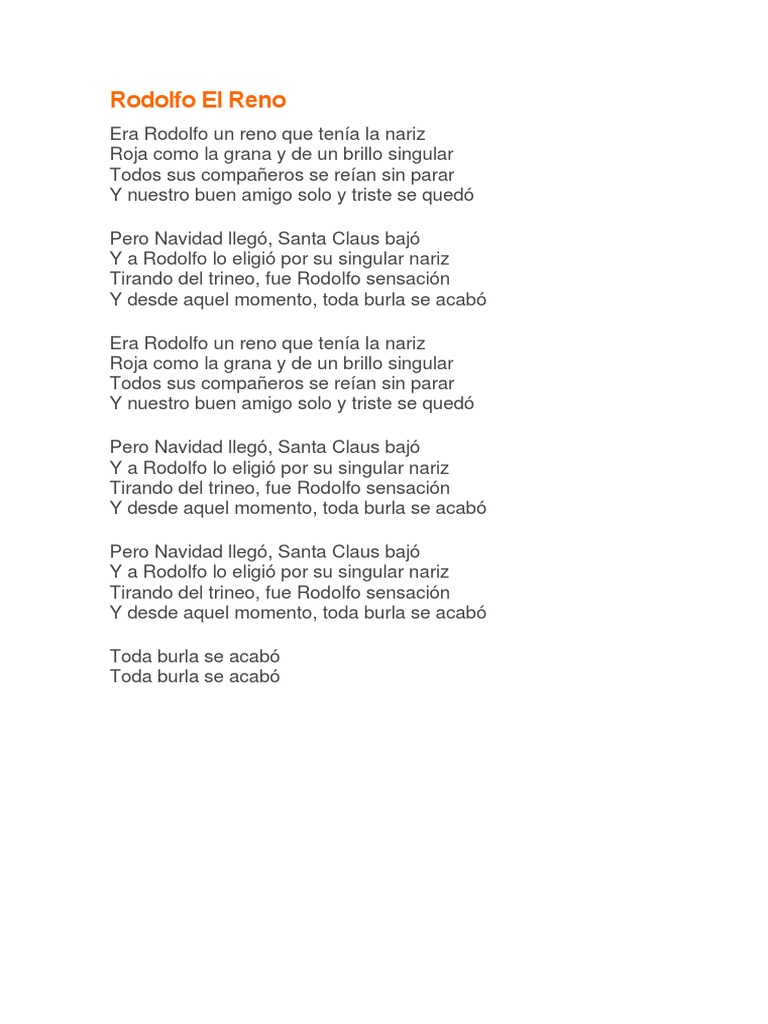 Era Rodolfo un reno que tenía la nariz Roja como la grana y de un brillo singular Todos sus compañeros se reían sin parar Y nuestro buen amigo solo y triste se quedó. Y desde aquel momento toda burla se. Rodolfo el reno con letra.